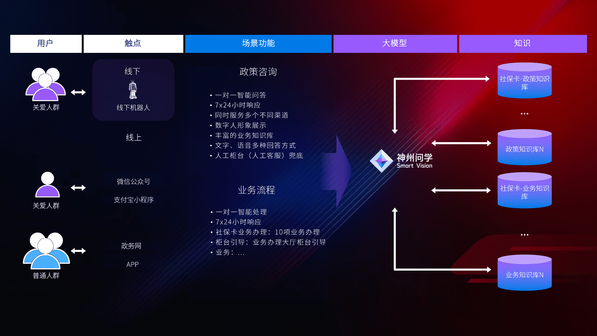 • 线上线下全覆盖:线上提供微信公众号、、支付宝小程序、、政务网、、、、app多种渠道,,与线下机器人形成完整服务体系。。