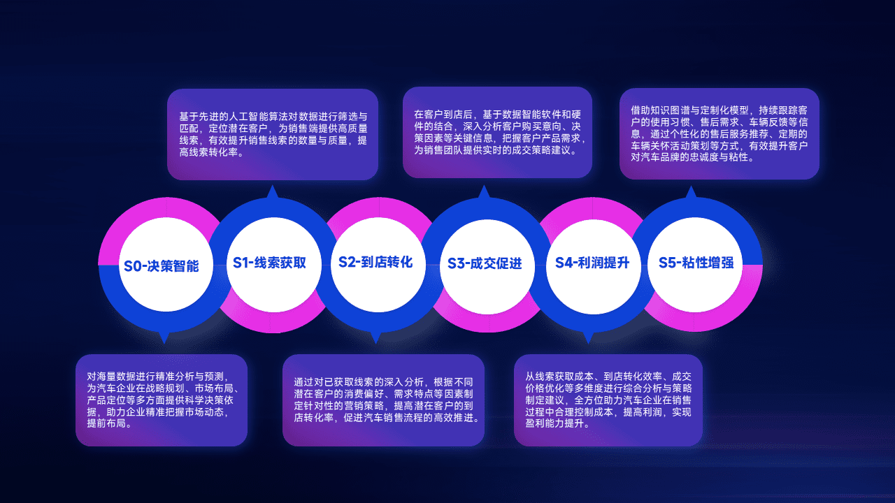通过拓宽潜在客户来源、、、优化线索分配并提高到店转化率,,以增强销售效率。。。同时,,,利用线索数据不断优化分析模型,,有效提升转化率,,,扩大营销影响力。。